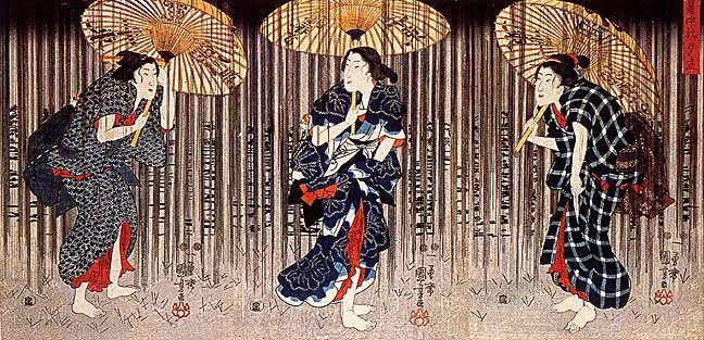 Three Girls In The Rain – Kuniyoshi (1798 – 1861)