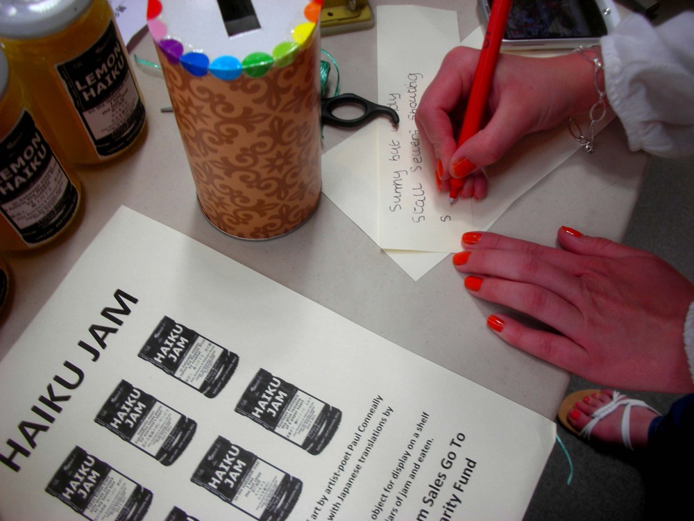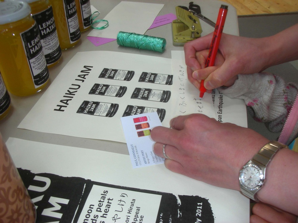The Haiku Jam series has been produced for the Japan Earthquake Appeal by artist poet and cultural forager Paul Conneally. The series was first released by Conneally as a limited edition publication of by award winning haiku poet Alan Summers with a Japanese translation by Hidenori Hiruta, on jars of jam, at the Japan Earthquake Japanese Cultural Day at Derby Roundhouse on the 5th June 2011.