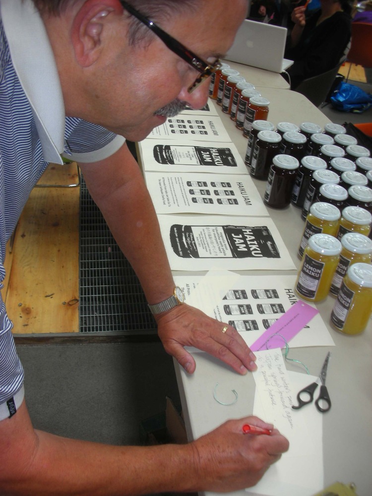Each jar of haiku jam has a haiku by  published on it.