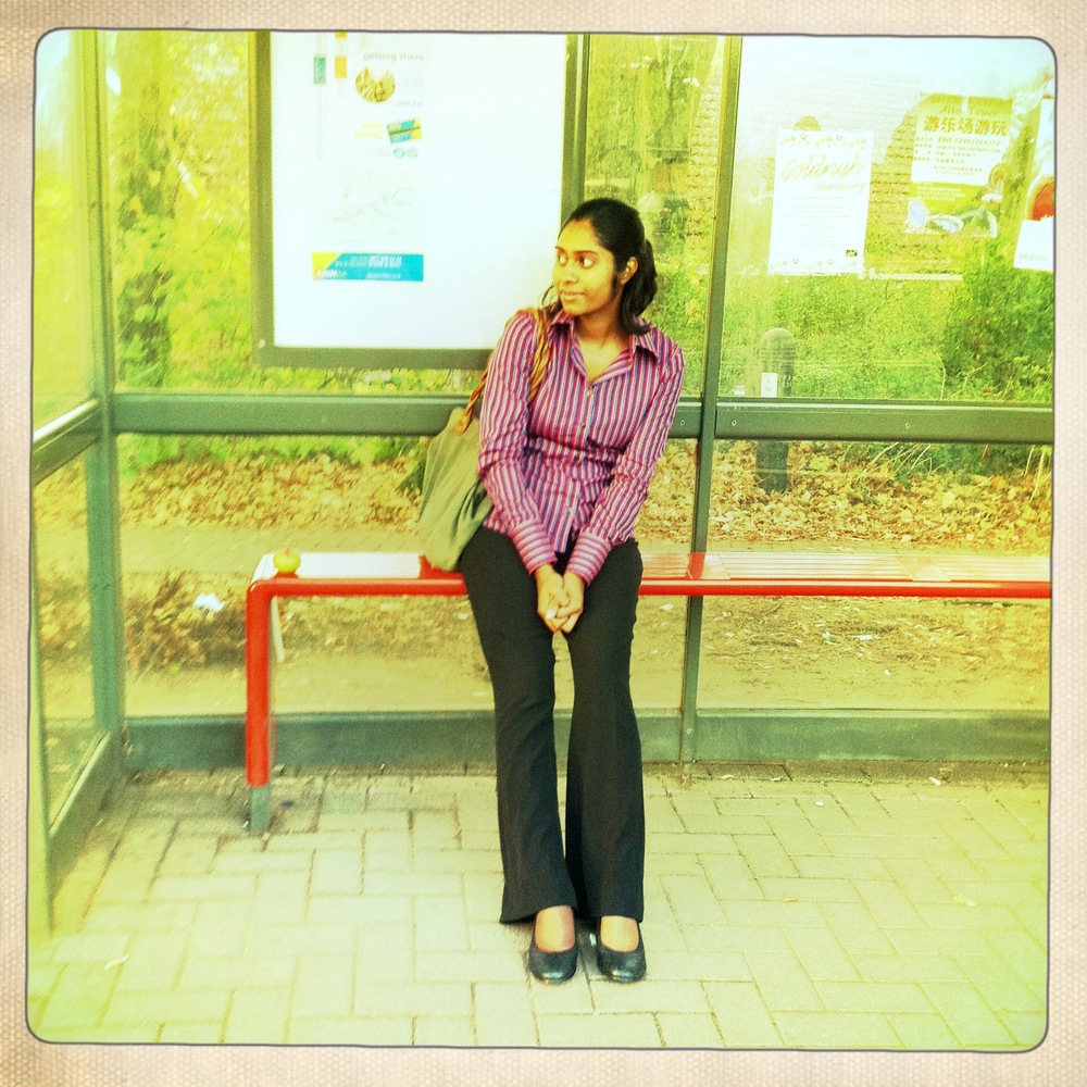The apple was placed in the bus shelter by Paul Conneally as part of Anne-Marie Culhane’s Fruit Routes.