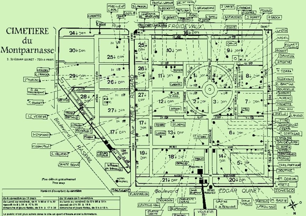 Cimetiere du Montparnasse Map By Little Onion December 30, 2012 A map of Montparnasse Cemetery Share this: Click to share on X (Opens in new window) X Click to share on Facebook (Opens in new window) Facebook Click to share on LinkedIn (Opens in new window) LinkedIn Click to share on Tumblr (Opens in new window) Tumblr Click to share on Pinterest (Opens in new window) Pinterest Like Loading...