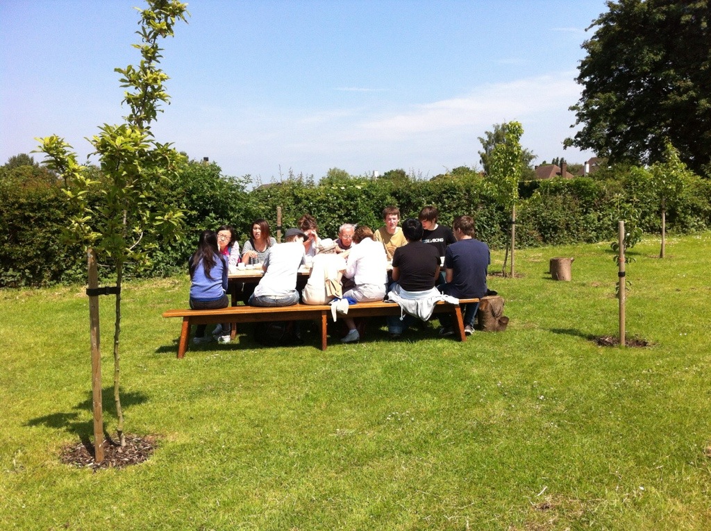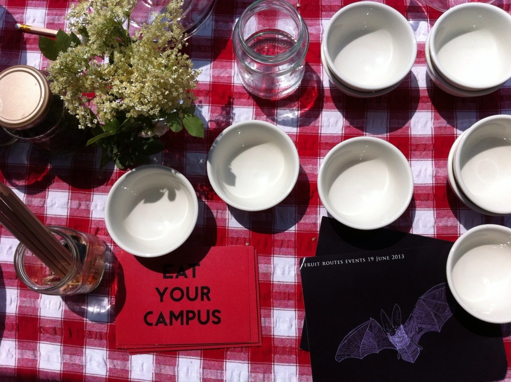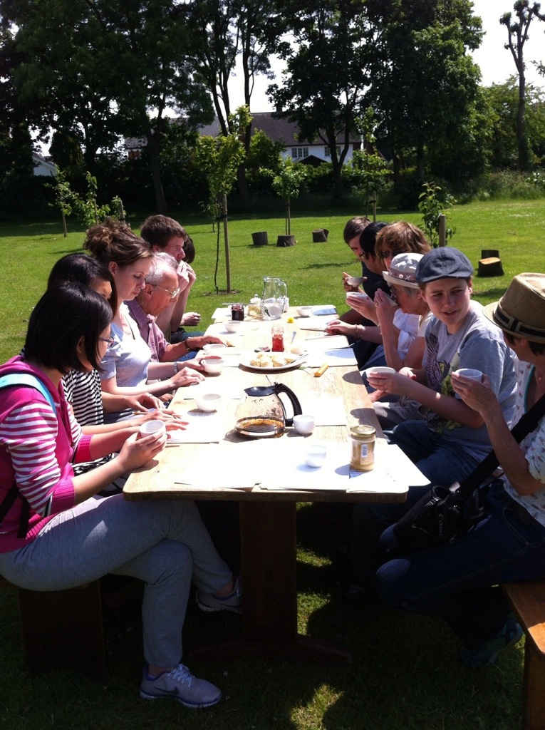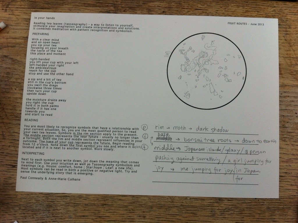 IN YOUR HANDS – members of the public, students, staff were invited by artist activists Anne-Marie Culhane and Paul Conneally to join them in the Fruit Route Orchard at Loughborough University for wild tea, scones, jam, clotted cream and tasseography – reading the tea leaves!