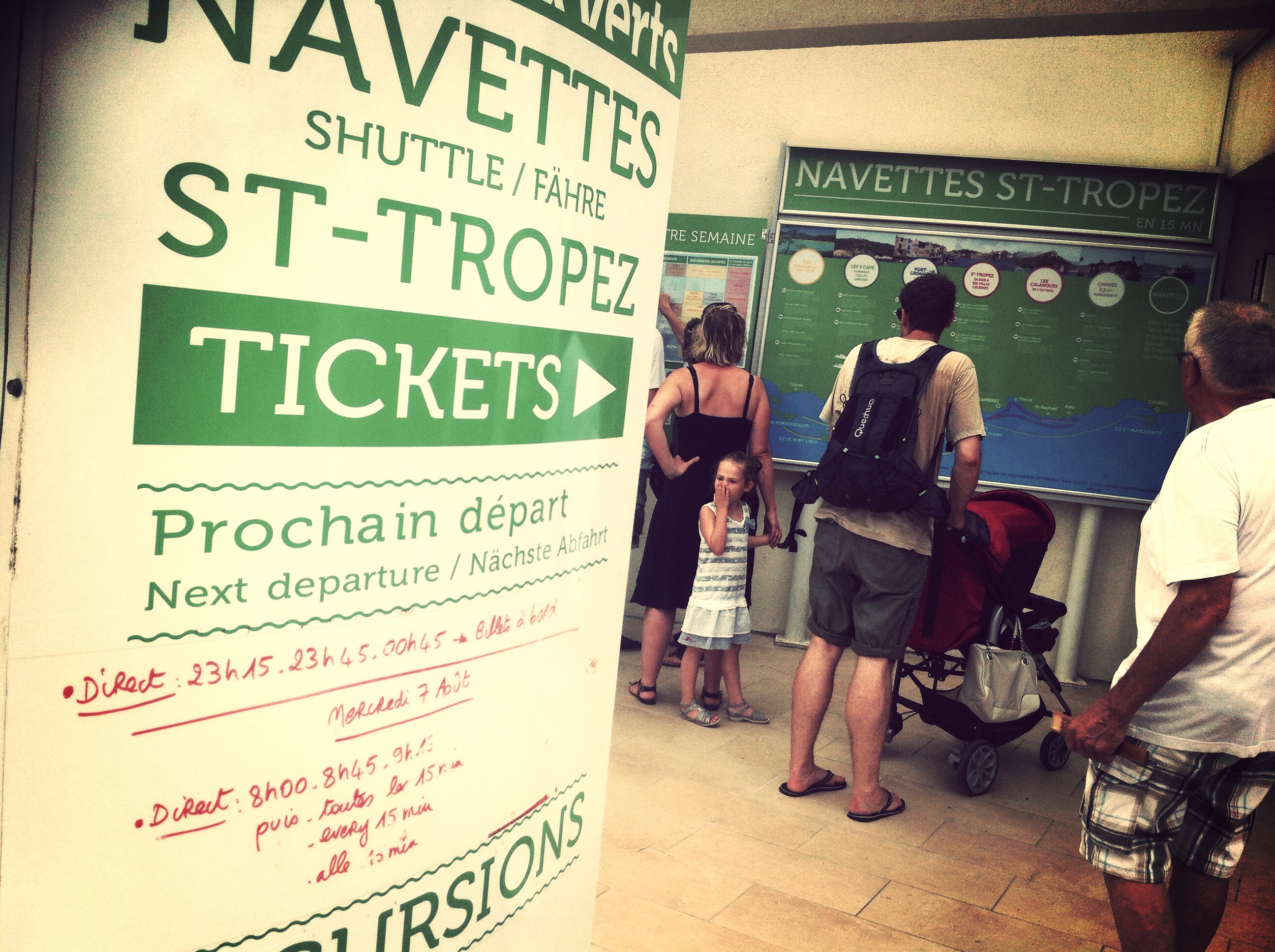 A shuttle service runs every 15 minutes between Sainte Maxime and her more famous neighbour. Out across the Golfe. Sit inside if you don’t want to get wet, especially on choppy days, outside for exhilaration and the view.