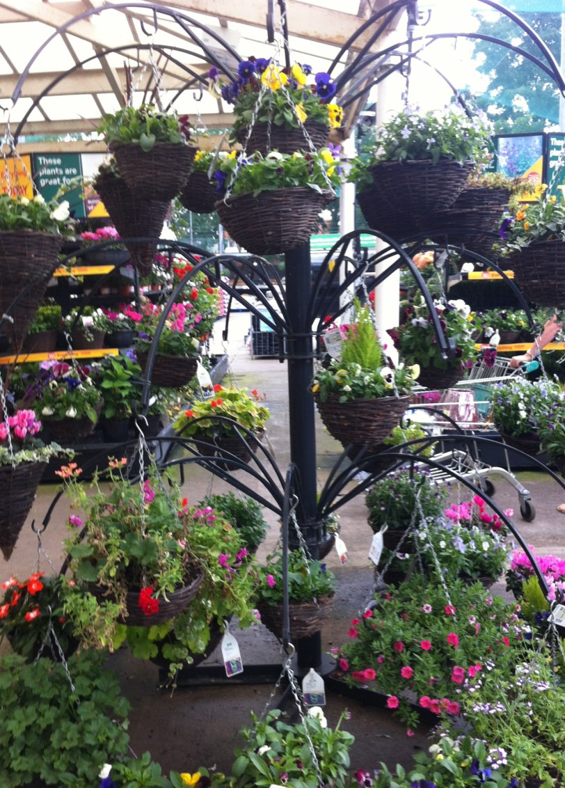 Each of the hanging baskets has a small plastic toy soldier embedded in its soil placed there by the artist after hearing that the US and the UK were considering attacking Syria.