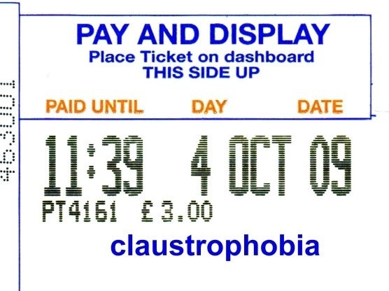 A new (Nov 2013) limited edition of 20 individual prints of this self portrait car park ticket from INVIGILATOR : MALVERN (2009) on used envelopes is now available.