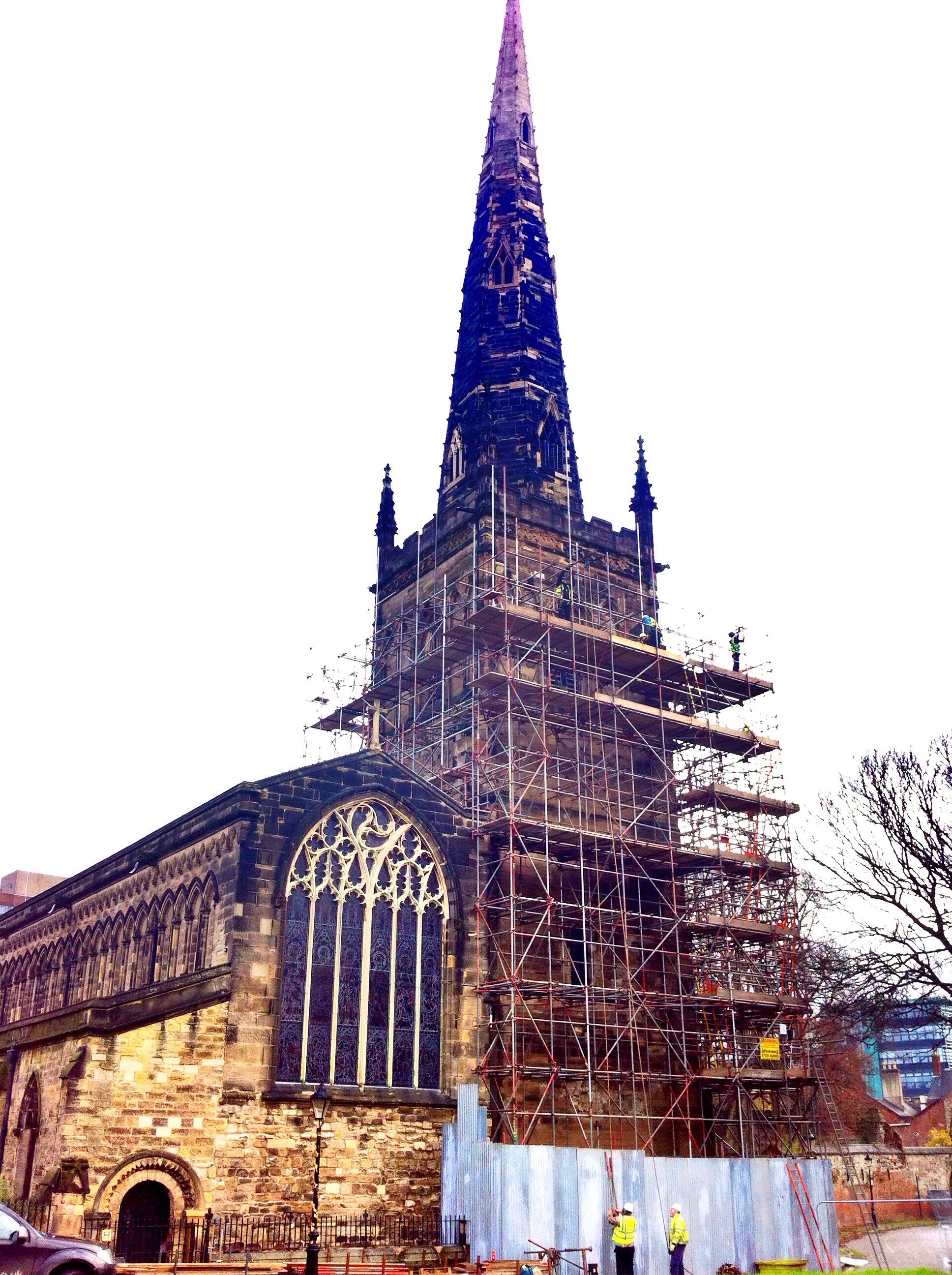 More work since then has been undertaken periodically from then to the present day when it is now having its most radical treatment in that it is being completely taken down after being deemed unsafe. Work to put up scaffolding started on the 18th of November and it is currently at a height just below the start of the spire itself.