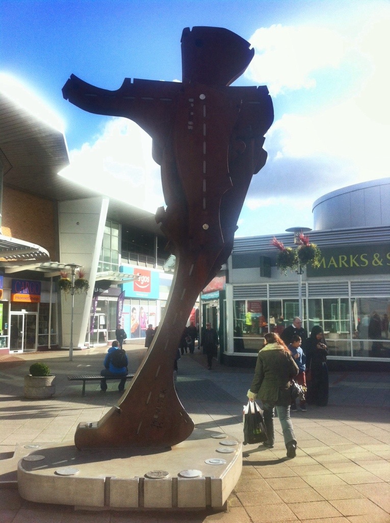 The overall form of the sculpture is of the figure and the materials used reflect the past industries of the region and the future.