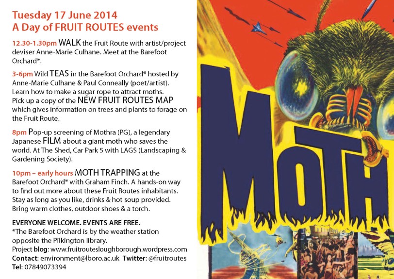 FRUIT ROUTE EVENTS 17th June 2014 Loughborough University By Little Onion June 5, 2014 art Cinema environment Fruit routes gardening green Loughborough University moths Join us for a day and night of moths and maps on the 17th June 2014 at Loughborough University Fruit Routes. EAT YOUR CAMPUS Share this: Click to share on X (Opens in new window) X Click to share on Facebook (Opens in new window) Facebook Click to share on LinkedIn (Opens in new window) LinkedIn Click to share on Tumblr (Opens in new window) Tumblr Click to share on Pinterest (Opens in new window) Pinterest Like Loading...