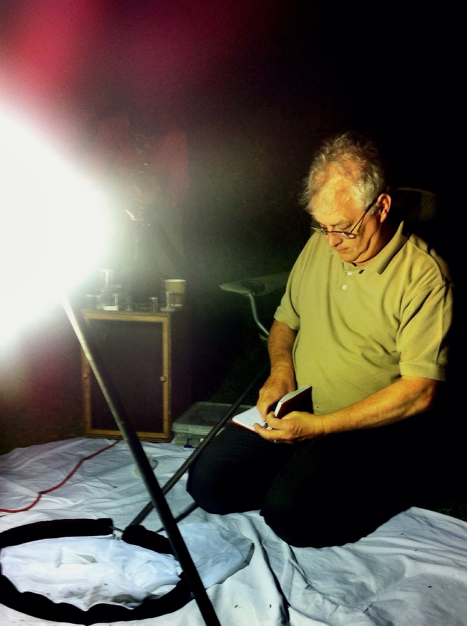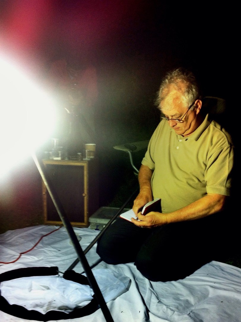 Adrian Russell is the County Moth Recorder for Leicestershire and Rutland. He is seen here during the Fruit Routes ‘Night of Moths’ at Loughborough University.