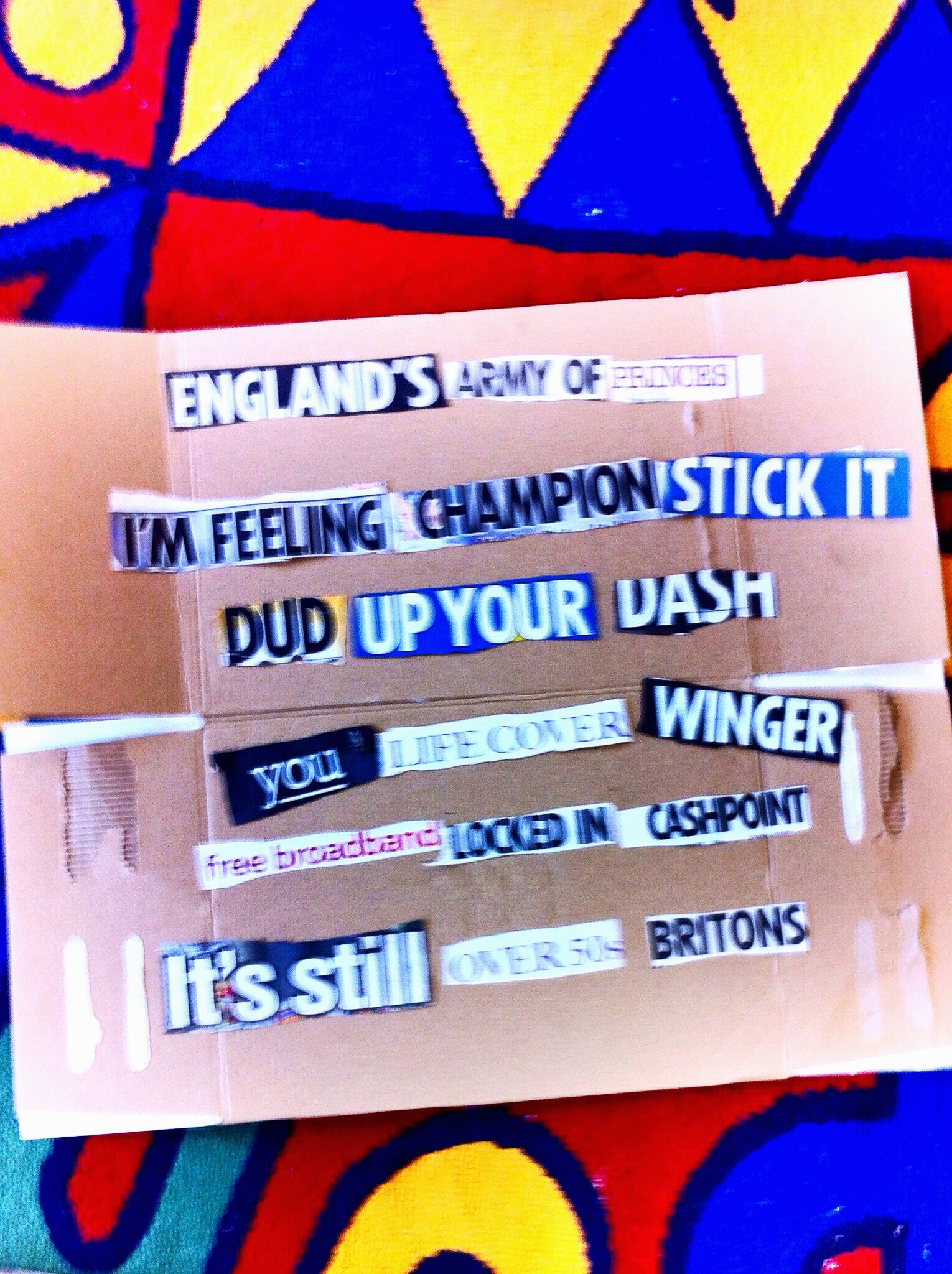 ‘Dud Up Your Dash’ is a Shreadlines piece created out of cut up SUN headlines by the New Parks Poetry Machine Crew with artist poet Paul Conneally for and with Soft Touch Arts and Leicester City Libraries.