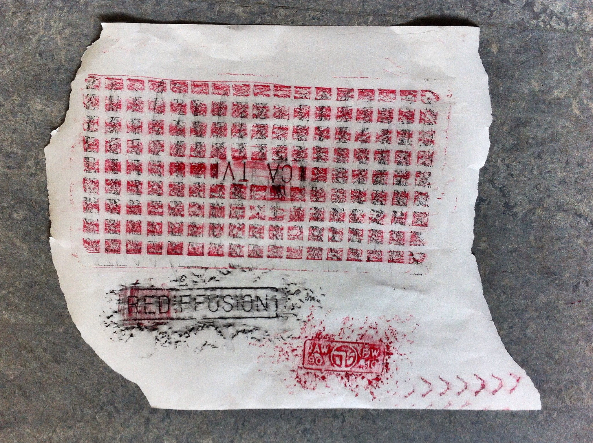REDIFFUSION is a frottage piece made by Mandy Pegg as part of ‘Involuntary Painting 1 New Parks : New York’ in New Parks, Leicester, March, 2015.