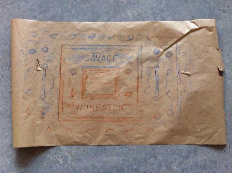 ‘SAVAGE NUNEATON’ is a frottage piece by Colin Murphy made as part of Involuntary Painting 1 New Parks : New York in New Parks, Leicester.