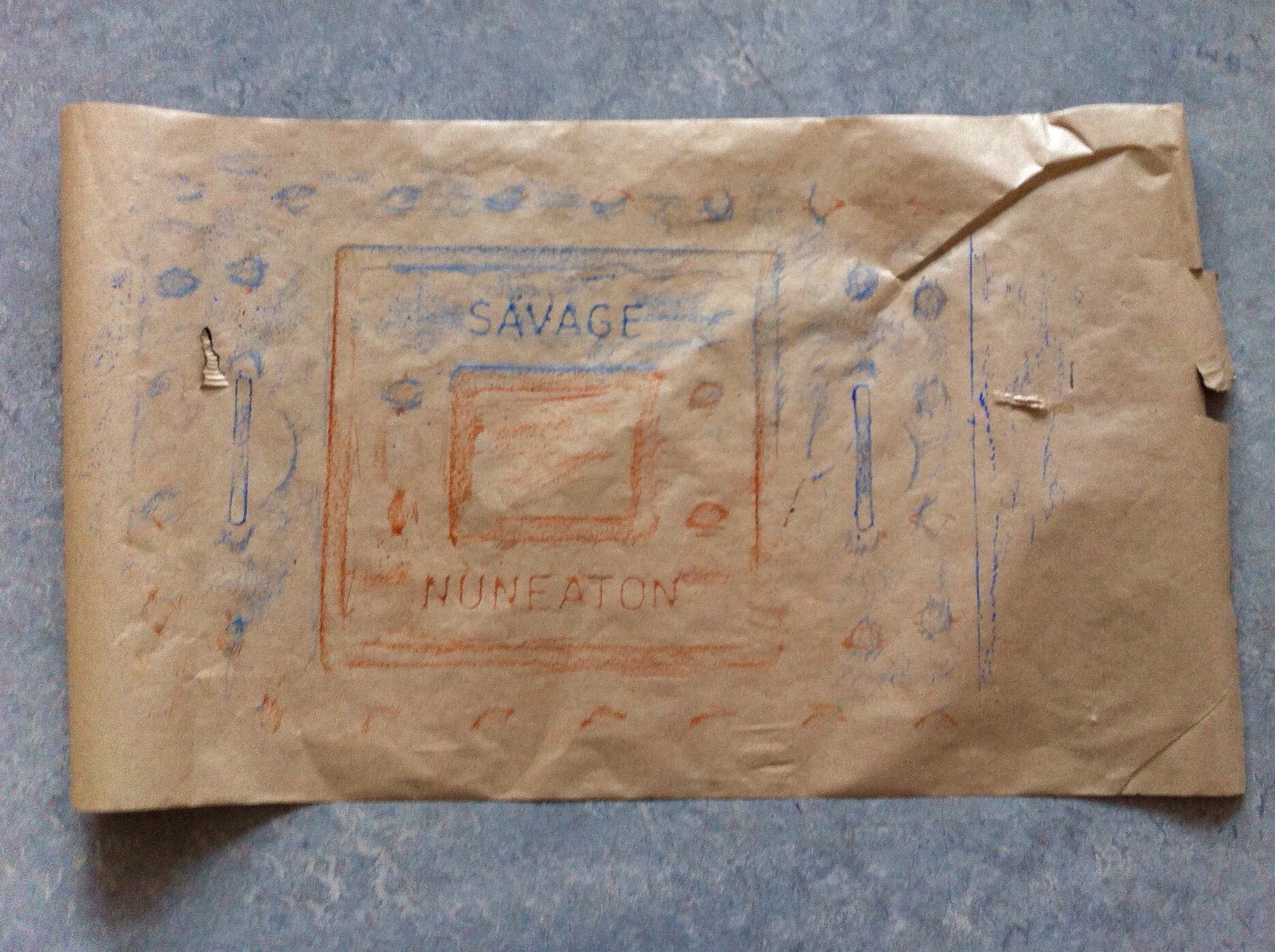 ‘SAVAGE NUNEATON’ is a frottage piece by Colin Murphy made as part of Involuntary Painting 1 New Parks : New York in New Parks, Leicester.
