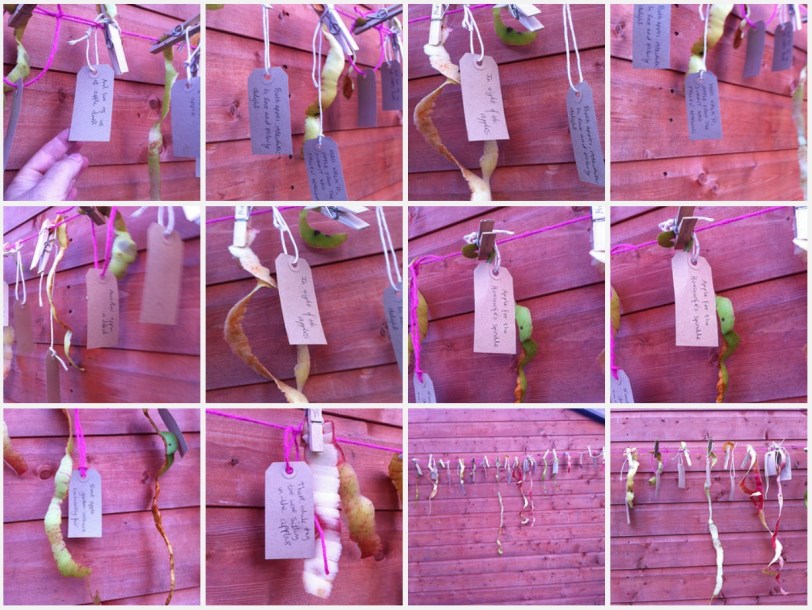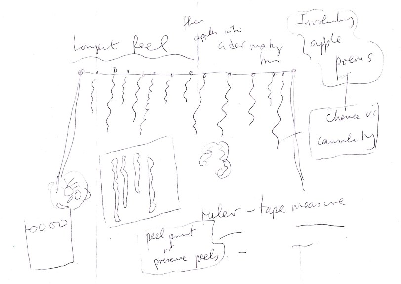 Initial sketch plan for making ‘Involuntary Apple Peel Poems’ a performative, collaborative art intervention – Paul Conneally, Loughborough University Fruit Route, October 2014.