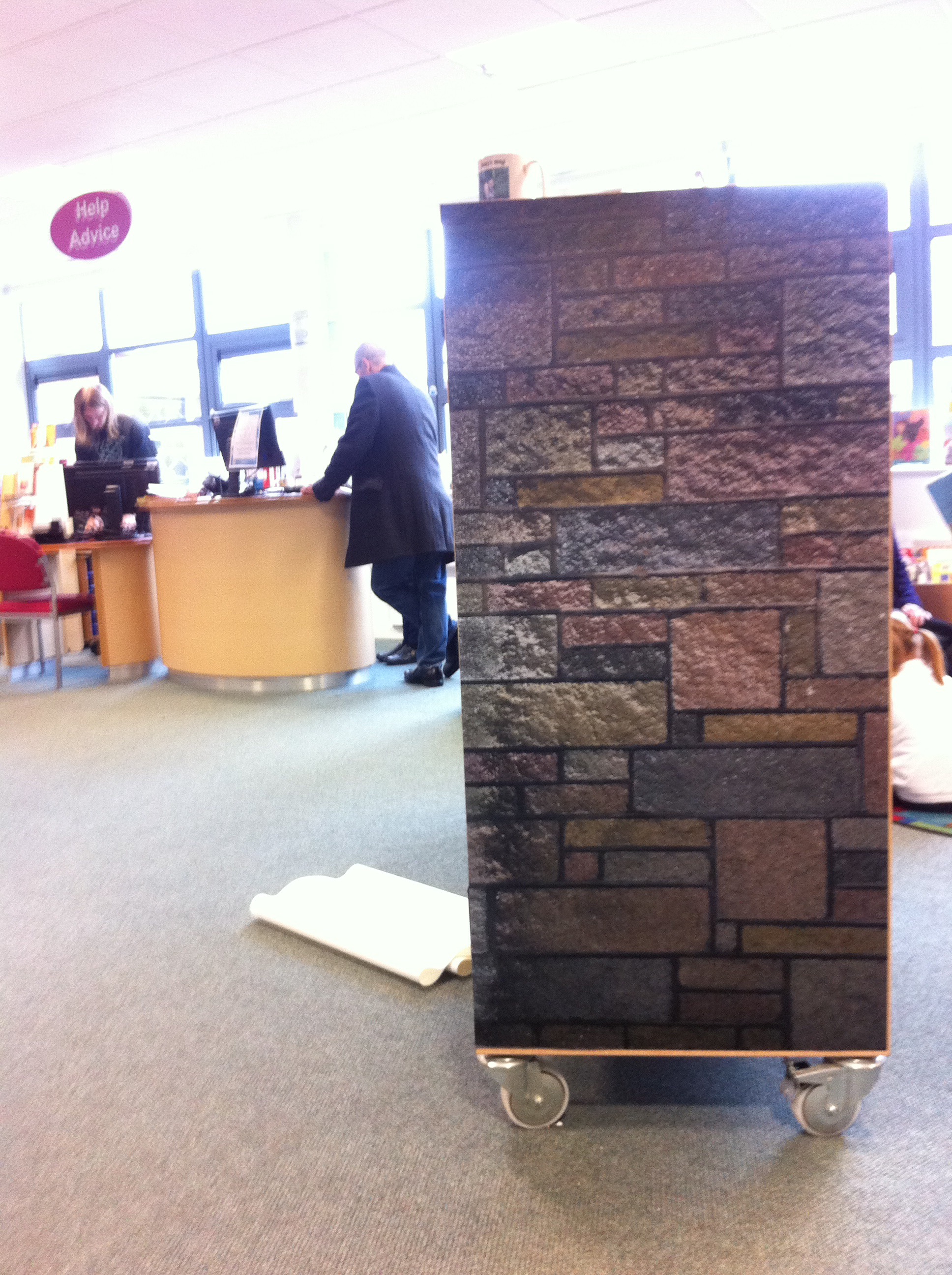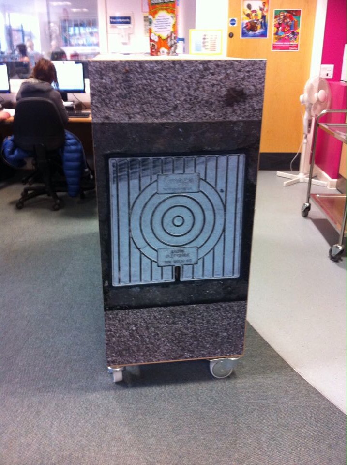 This tyre mark was identified as an ‘involuntary painting’ and photographed by local man Colin Murphy with Conneally. It was located along the lefthand side of St Oswald’s Road straight opposite the library. It now forms part of the library itself being applied to the front windows of the library on February 2nd 2016 by Conneally and Sally Norman from Soft Touch Arts.