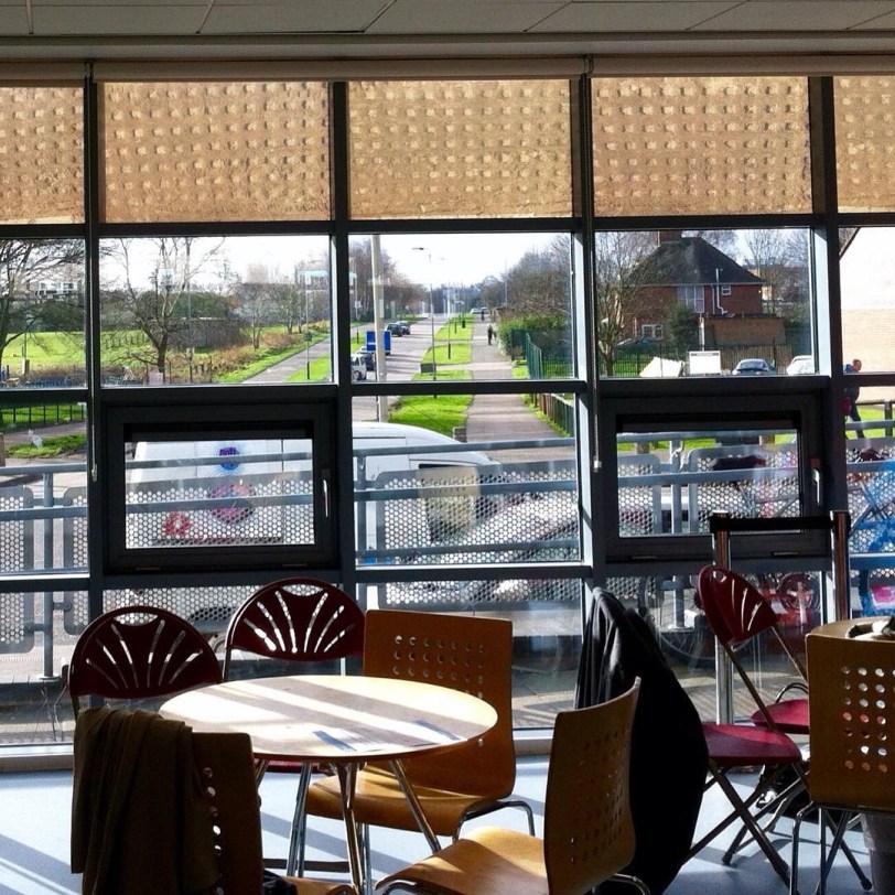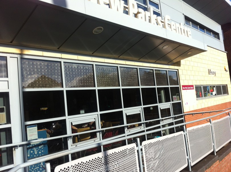 Involuntary Painting 1 New Parks : New York culminated with images of things identified as ‘involuntary paintings’ by members of the Creative New Parks group being incorporated into the fabric of the New Parks Centre Library. One of the pieces was a series of photographs of a kerb and tyre mark running up the road , St. Oswald’s Road, opposite the library, which were applied to the library front windows. Here’s one of the original images: