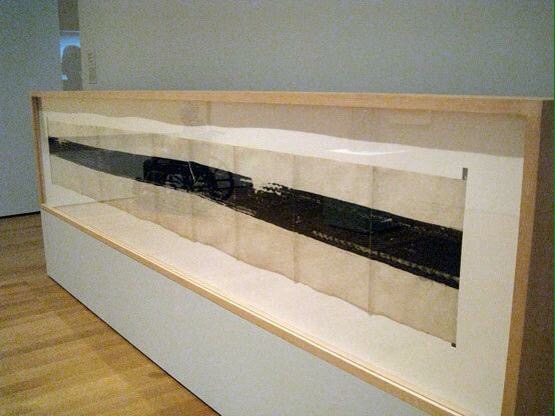 Above is ‘Tire Print’ a voluntary artwork by Robert Rauschenberg made with John Cage. Below is the group’s work drying in the library.