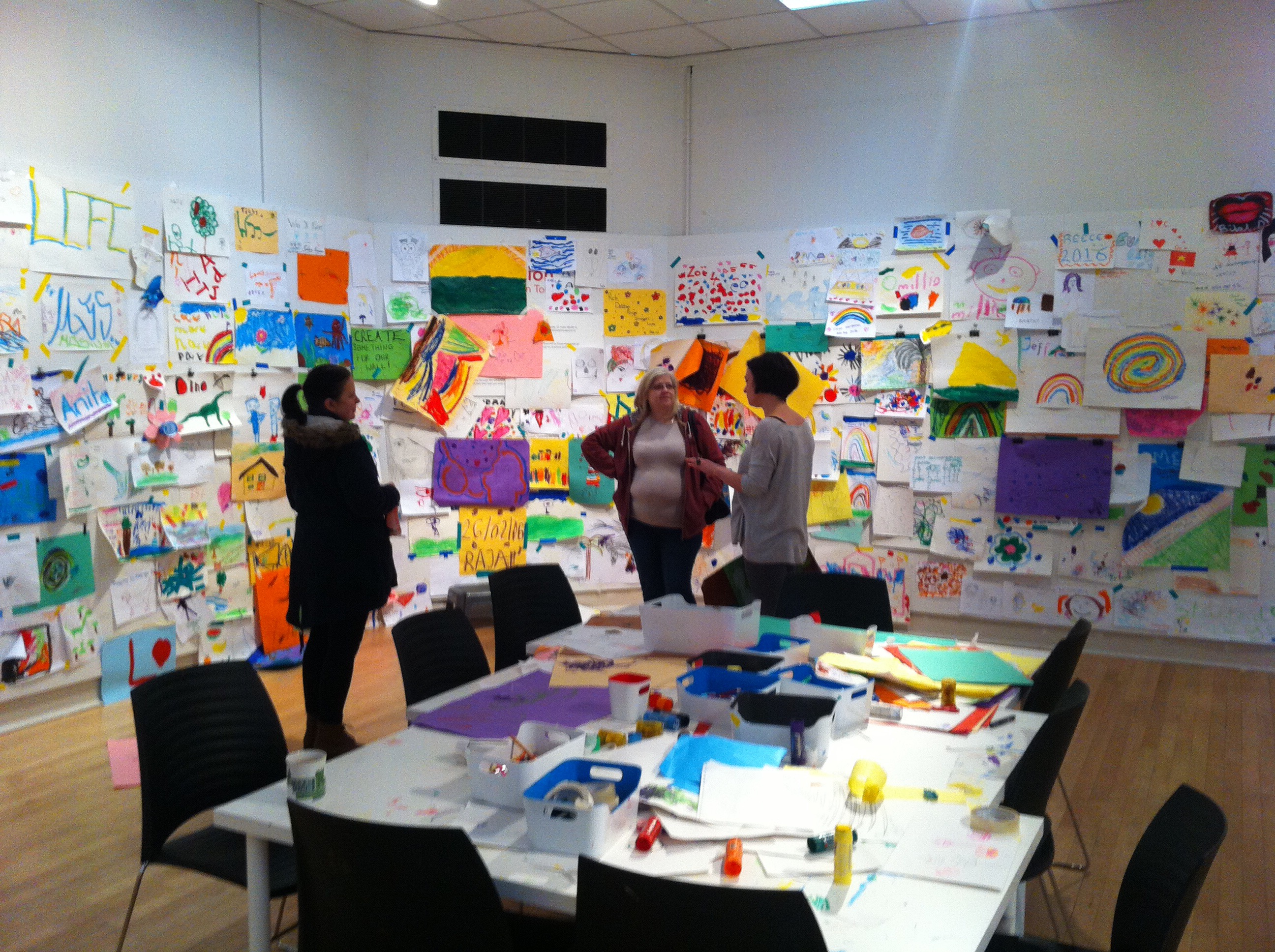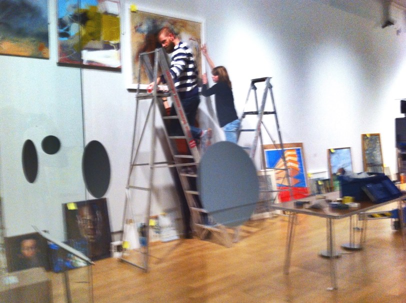 Above: New Walk Museum and Art Gallery staff hanging the Leicester 2016 Open Exhibition