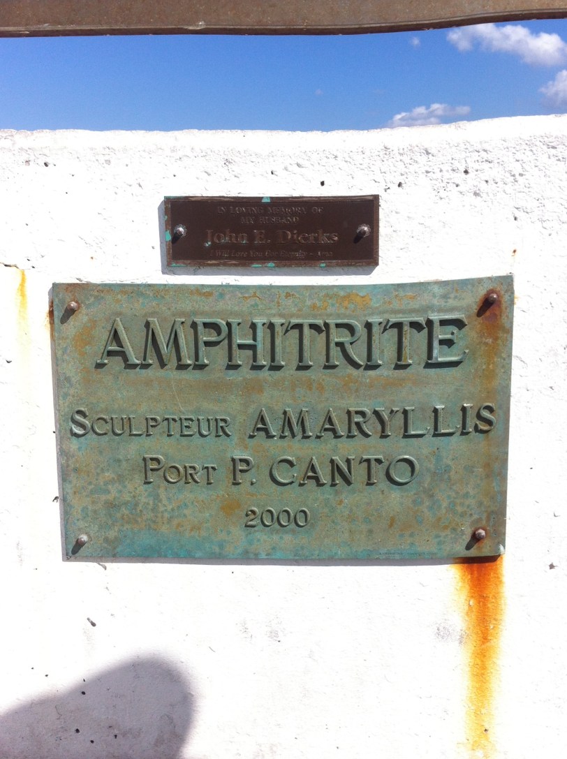 Amphitrite stands at the entrance to the Porte Pierre Canto in Cannes. She is a statue by the sculptor Amaryllis Bataille and was installed in the year 2,000 to mark the new millennium.