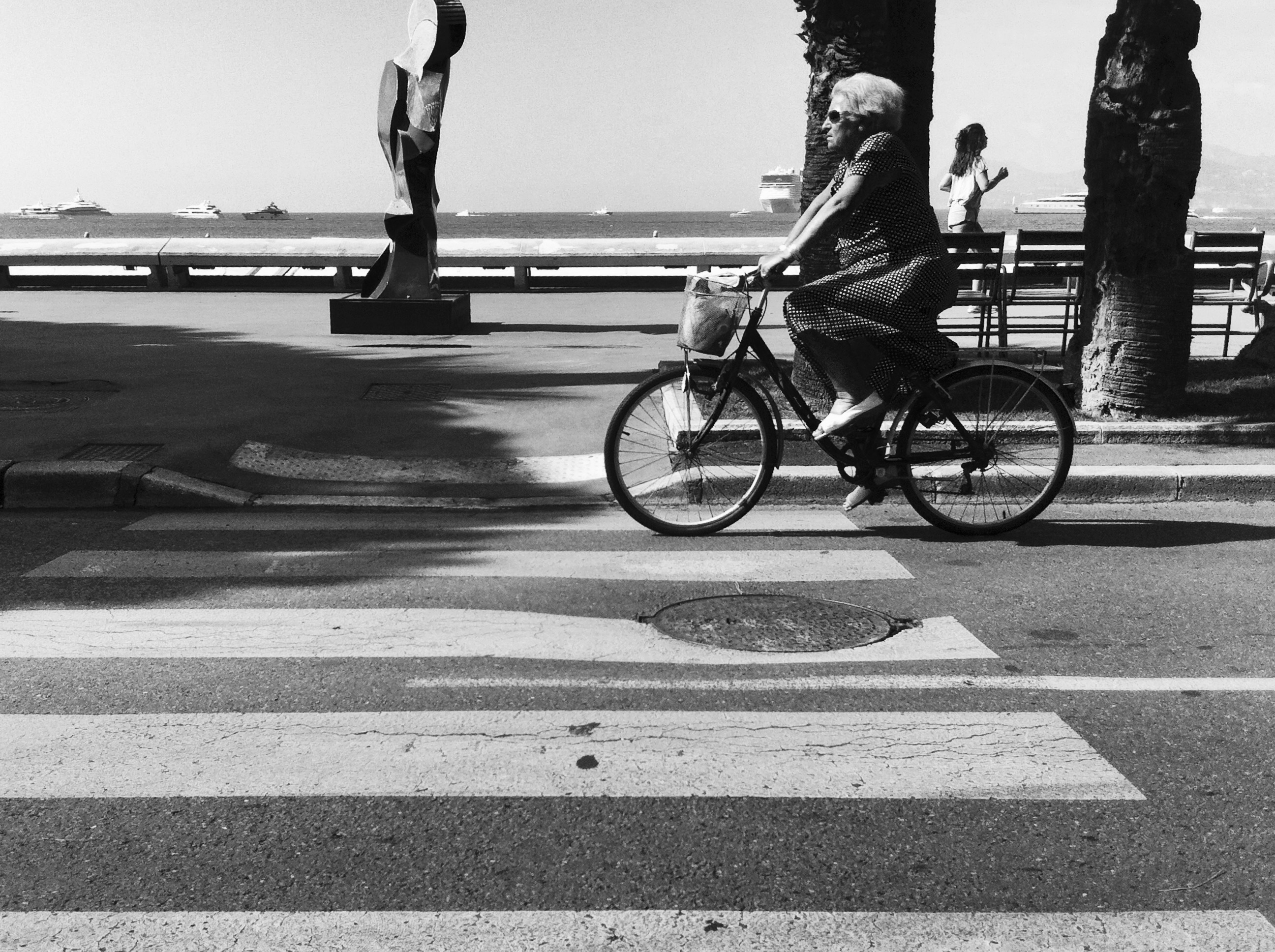 This older lady doesn’t want the bother of weaving in and out of the people walking La Croisette and chooses instead to take her chances with the automobiles and motorbikes along the boulevard itself. Even in the mid-summer heat she manages to maintain a certain style one that comes with confidence and a sense of purpose.