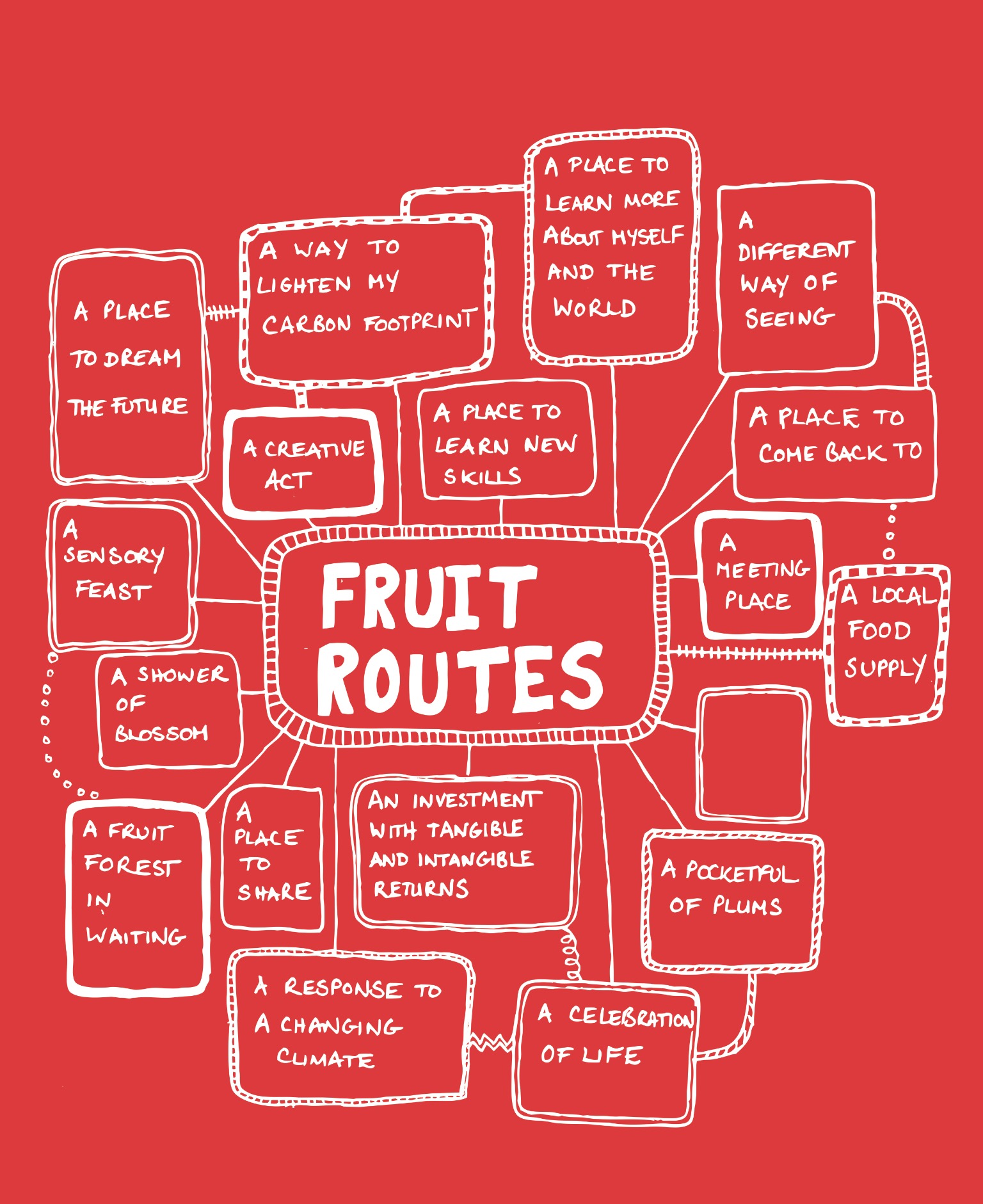 Fruit Routes – graphic from the Fruit Routes Recipes pamphlet by Anne-Marie Culhane