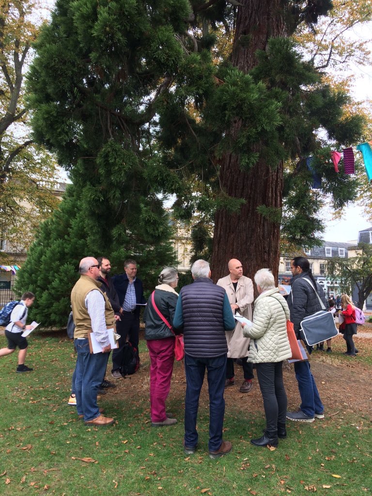 During my stint as haiku poet in residence at The Times & Sunday Times Cheltenham Literature Festival I led each day a haiku walk. We meet in the ‘bookstand’ in Montpellier Gardens and walk down to this pine tree where I introduce myself, Basho and haiku!