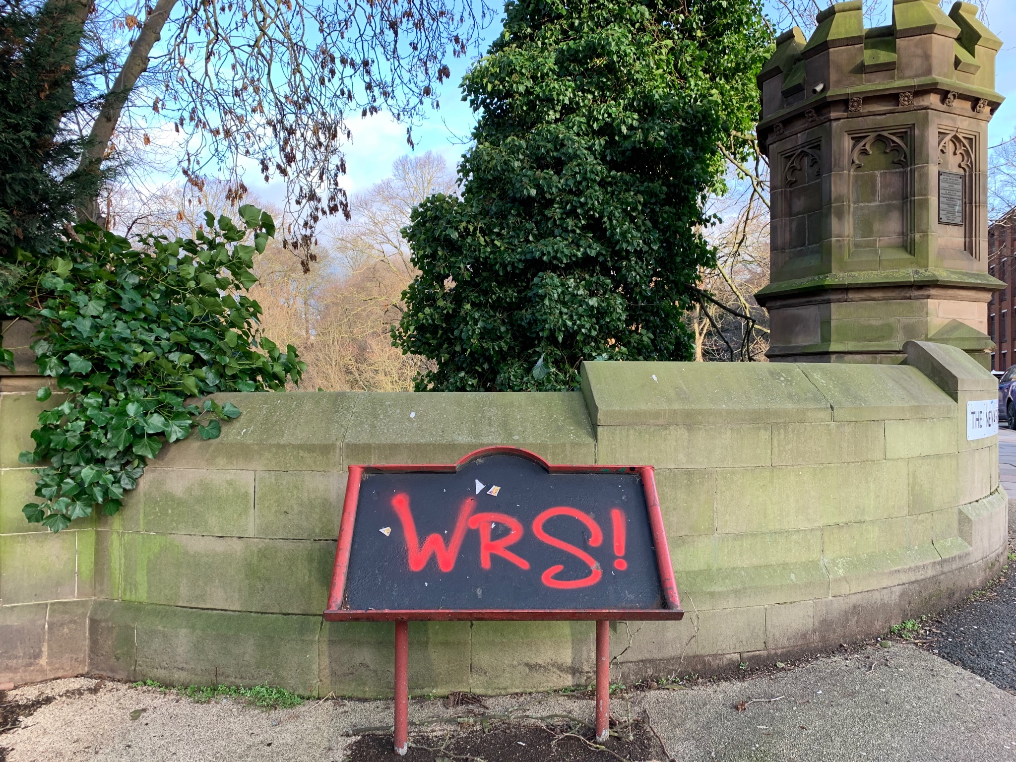This ‘interpretation board’ has been blank of official text for a very long time. It keeps changing as people tag it, be sick over it, put stickers on it. Then it gets painted over black again by the city council and the process starts again.
