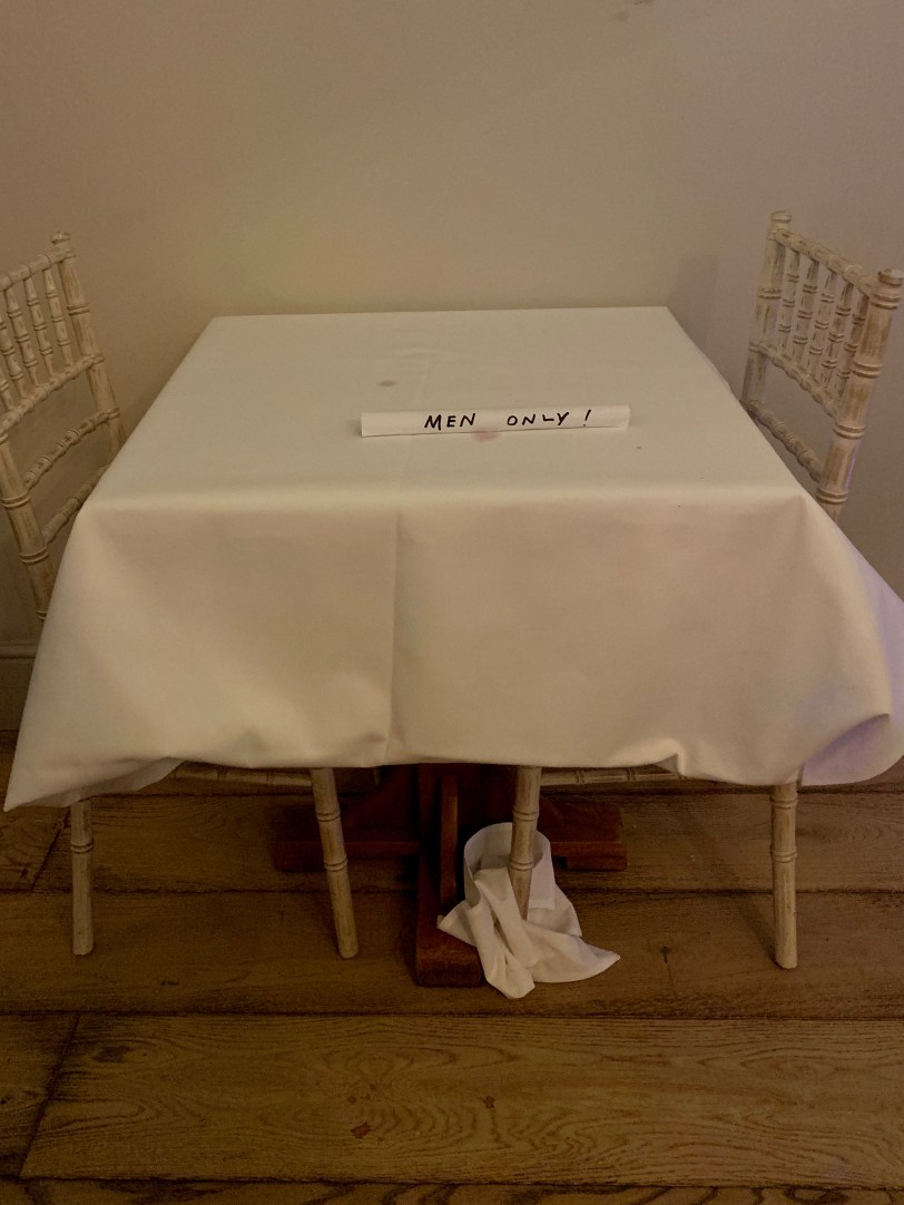I’m not sure what this sign is doing on this table. I think it’s there coincidentally. Popped there by someone who’d removed it from somewhere else. Could have been from the venue toilets. This place, a smart new pavilion in the grounds of The Manor, an excellent pub restaurant with luxury rooms in Quorn, is often used for wedding receptions and other events, maybe during busy disco nights when the queue for the women’s toilets is long some women go and use the men’s and this sign is to discourage them. I say to the women go for it!