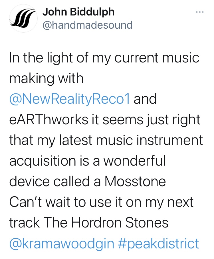 In the light of my current music making with @NewRealityReco1 and eARThworks it seems just right that my latest music instrument acquisition is a wonderful device called a Mosstone Can’t wait to use it on my next track The Hordron Stones @kramawoodgin #peakdistrict