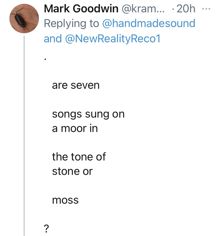 I start the morning thinking of eARThworks our new ongoing series of musical, poetic, performative, collaborative works with New Reality Records and more .. what will it can it be become? Musician and composer, John Biddulph, pushes us gently forwards poet Mark Goodwin adds to the momentum.. it grows..