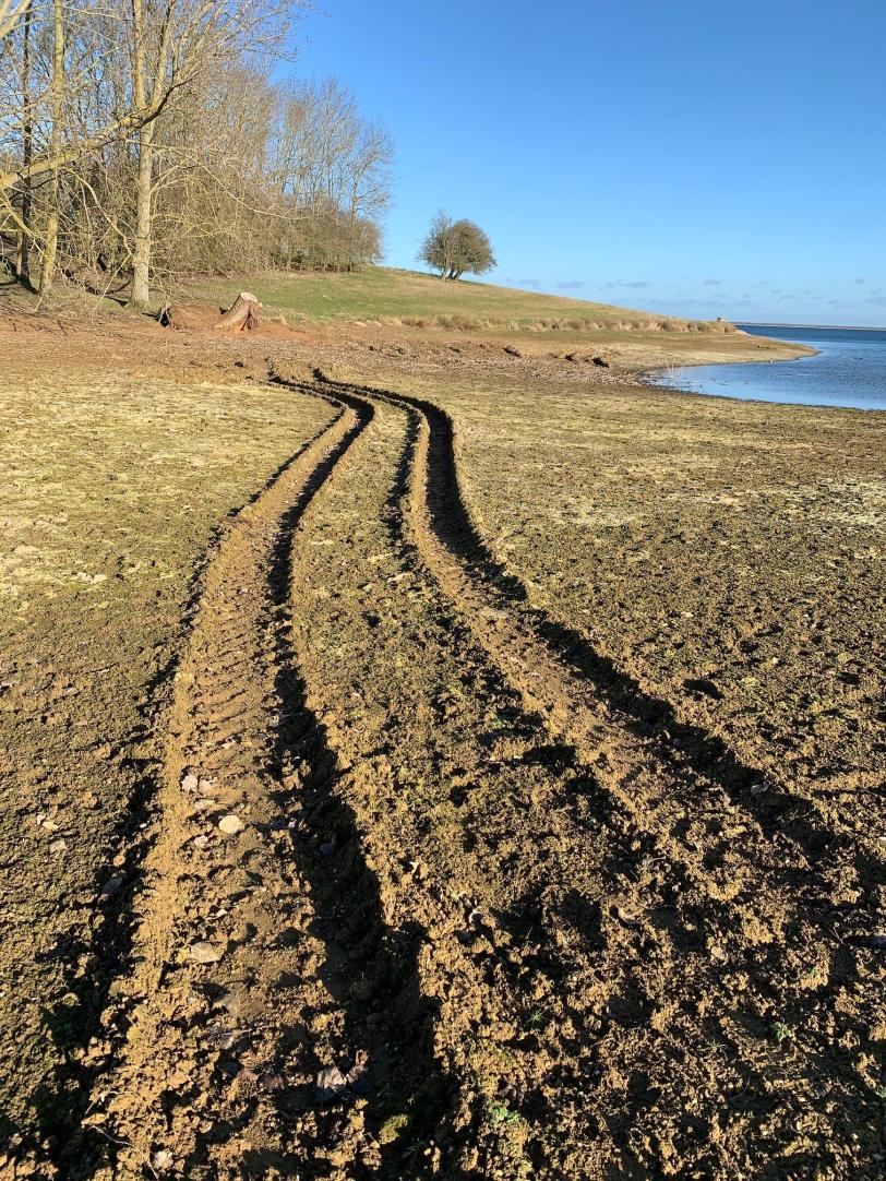 Yes tractor tyre marks in a field on the Rutland Water ‘peninsular’ not far from Hambleton where we parked up and also had afternoon tea!