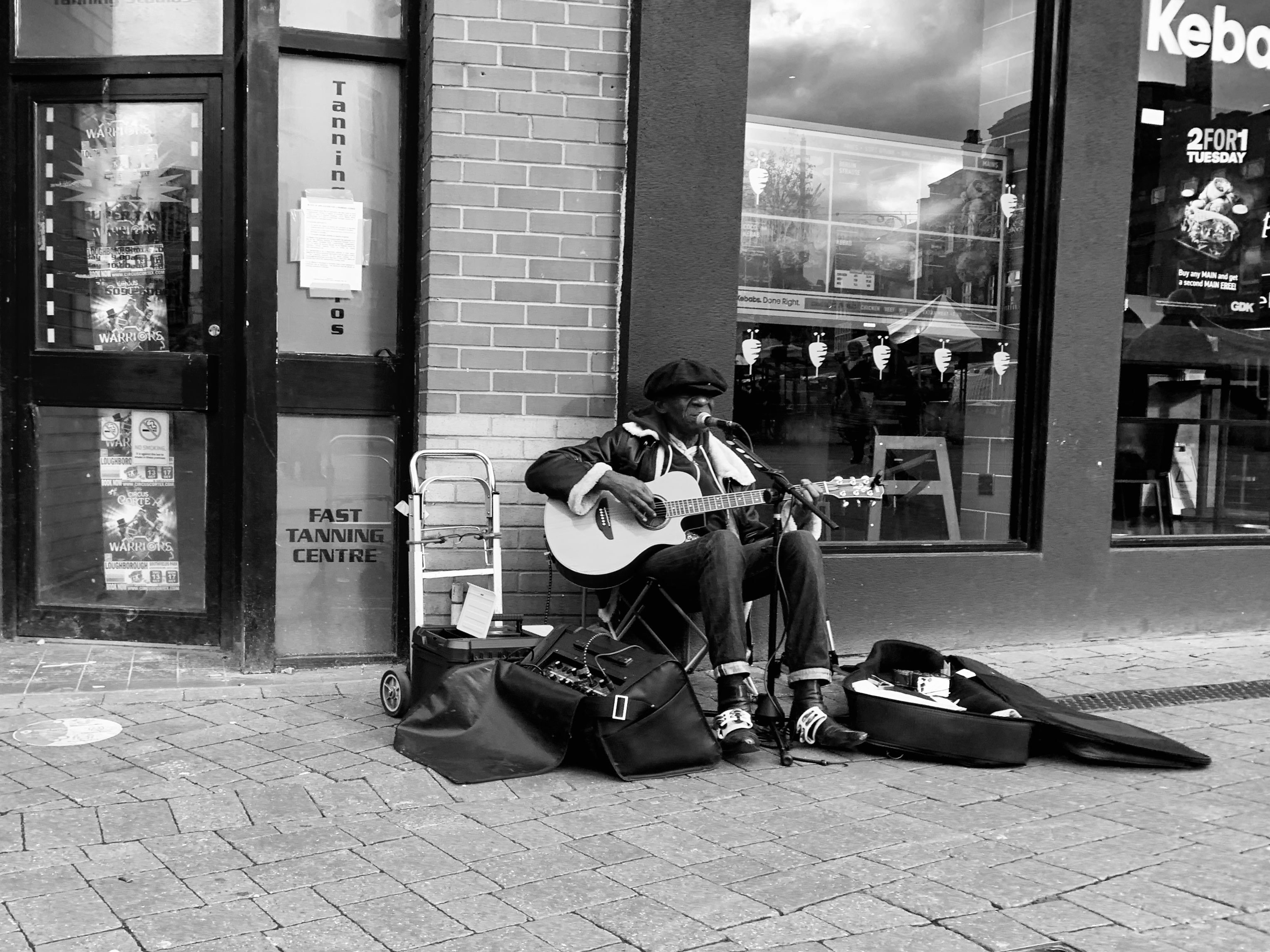 Photograph: ‘Eddy’ caught singing between the tanning studio and the German Doner Kebab shop.