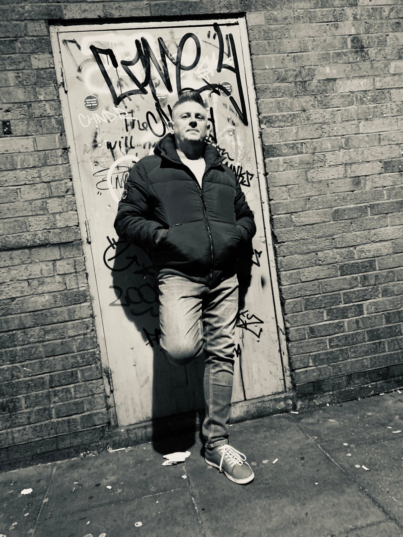 Kev Crane (The Singing Plumber) photographed by Paul Conneally in Loughborough after visiting The Cask Bah to see rainbow frog biscuits perform.